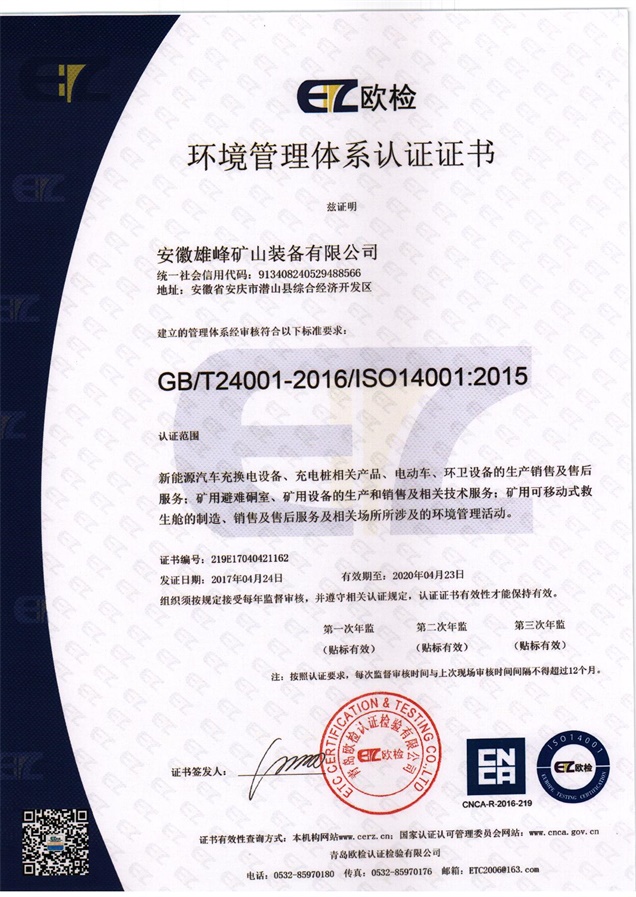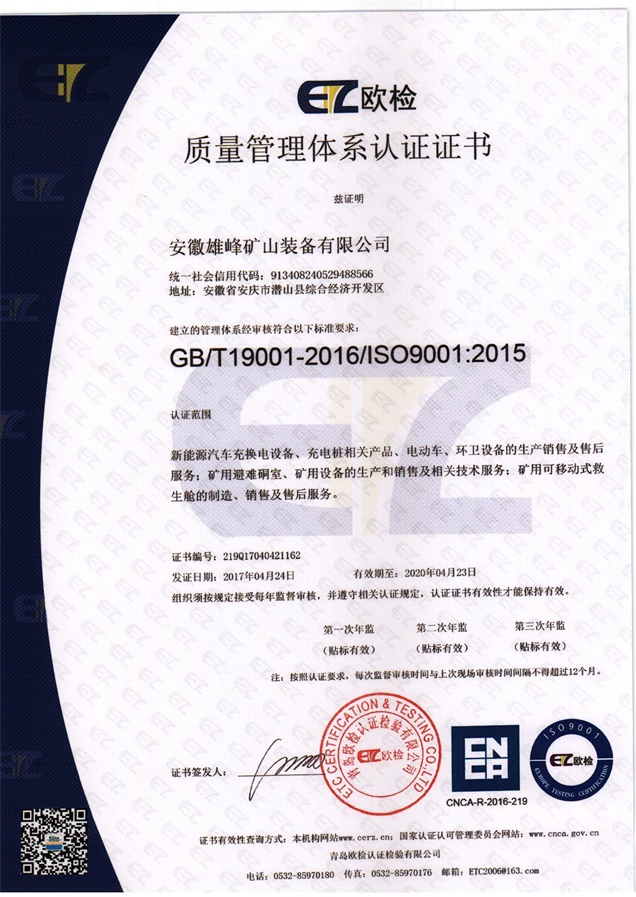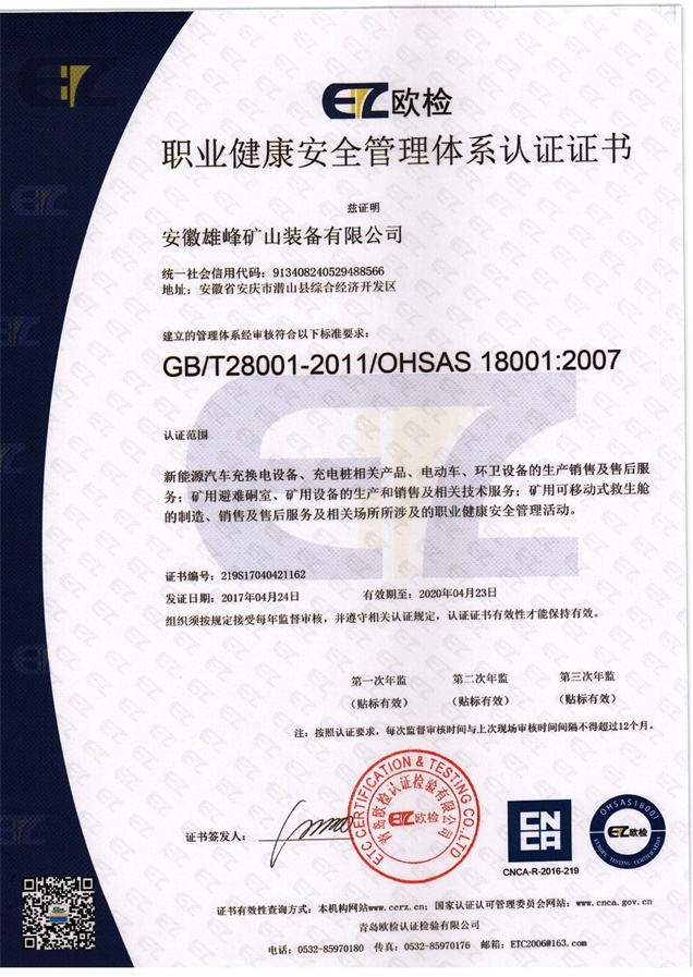 安徽天柱雄峰機(jī)電有限公司隸屬于安徽雄峰集團(tuán),公司座落在國(guó)家5A級(jí)風(fēng)景名勝區(qū)--天柱山腳下,是一家專(zhuān)業(yè)從事研發(fā)、生產(chǎn)、銷(xiāo)售礦山機(jī)械、礦用安全設(shè)備、機(jī)電設(shè)備及國(guó)際貿(mào)易的現(xiàn)代高新技術(shù)企業(yè)。公司被評(píng)定為國(guó)家科技部創(chuàng)新基金項(xiàng)目和國(guó)債項(xiàng)目重點(diǎn)支持單位、安徽省優(yōu)秀創(chuàng)新型企業(yè)。公司擁有省級(jí)企業(yè)技術(shù)中心和2個(gè)研究所,并與中國(guó)電子科技集團(tuán)合肥38研究所建立戰(zhàn)略合作關(guān)系。公司引用中國(guó)航天技術(shù),研發(fā)生產(chǎn)的礦用可移動(dòng)式救生艙和避難硐室可以在礦井發(fā)送事故后,為無(wú)法及時(shí)撤離的礦工提供安全的避難和等待救援的場(chǎng)所。該產(chǎn)品經(jīng)過(guò)模擬災(zāi)變環(huán)境下真人106小時(shí)的生存試驗(yàn)、高溫試驗(yàn)、爆炸試驗(yàn)等環(huán)節(jié)的檢測(cè),已取得國(guó)家礦用產(chǎn)品安全標(biāo)志證書(shū),具備國(guó)際領(lǐng)先技術(shù);且已取得專(zhuān)利23項(xiàng),其中兩項(xiàng)發(fā)明專(zhuān)利(大型密閉門(mén)新型專(zhuān)利、逃生裝置新型專(zhuān)利)。公司秉承“誠(chéng)信贏得市場(chǎng),創(chuàng)新引領(lǐng)未來(lái)”的經(jīng)營(yíng)理念,在“瞄準(zhǔn)高精尖,面向全球化”的發(fā)展戰(zhàn)略指導(dǎo)下,依托雄厚的科技力量和人才優(yōu)勢(shì),致力打造一流的礦用安全裝備,保障礦工生命安全,共建人類(lèi)幸福家園!